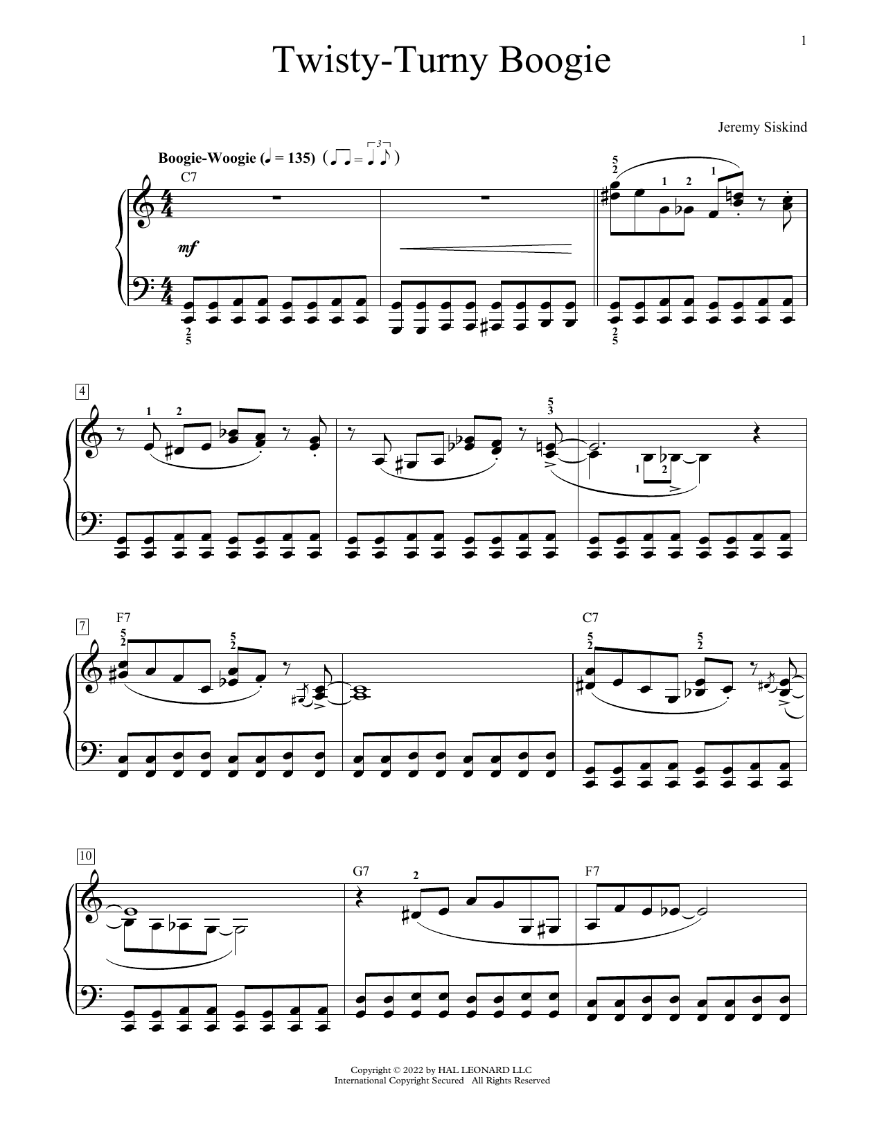 Download or print Jeremy Siskind Twisty-Turny Boogie sheet music, chords and digital score arranged for Educational Piano. This Jazz score includes 2 page(s).