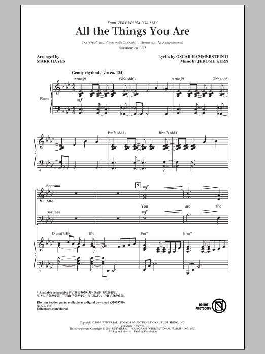 Download or print Mark Hayes All The Things You Are sheet music, chords and digital score arranged for SSA Choir. This Jazz score includes 1 page(s).