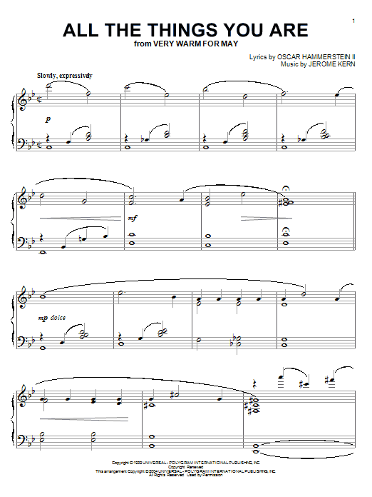 Download or print Jerome Kern All The Things You Are (arr. Phillip Keveren) sheet music, chords and digital score arranged for Piano Solo. This Jazz score includes 2 page(s).