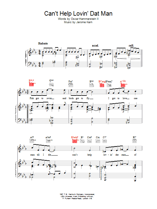 Quick facts Can't Help Lovin' Dat Man about digital sheet music
