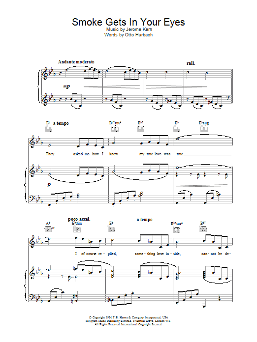 Quick facts Smoke Gets In Your Eyes (from Roberta) about digital sheet music