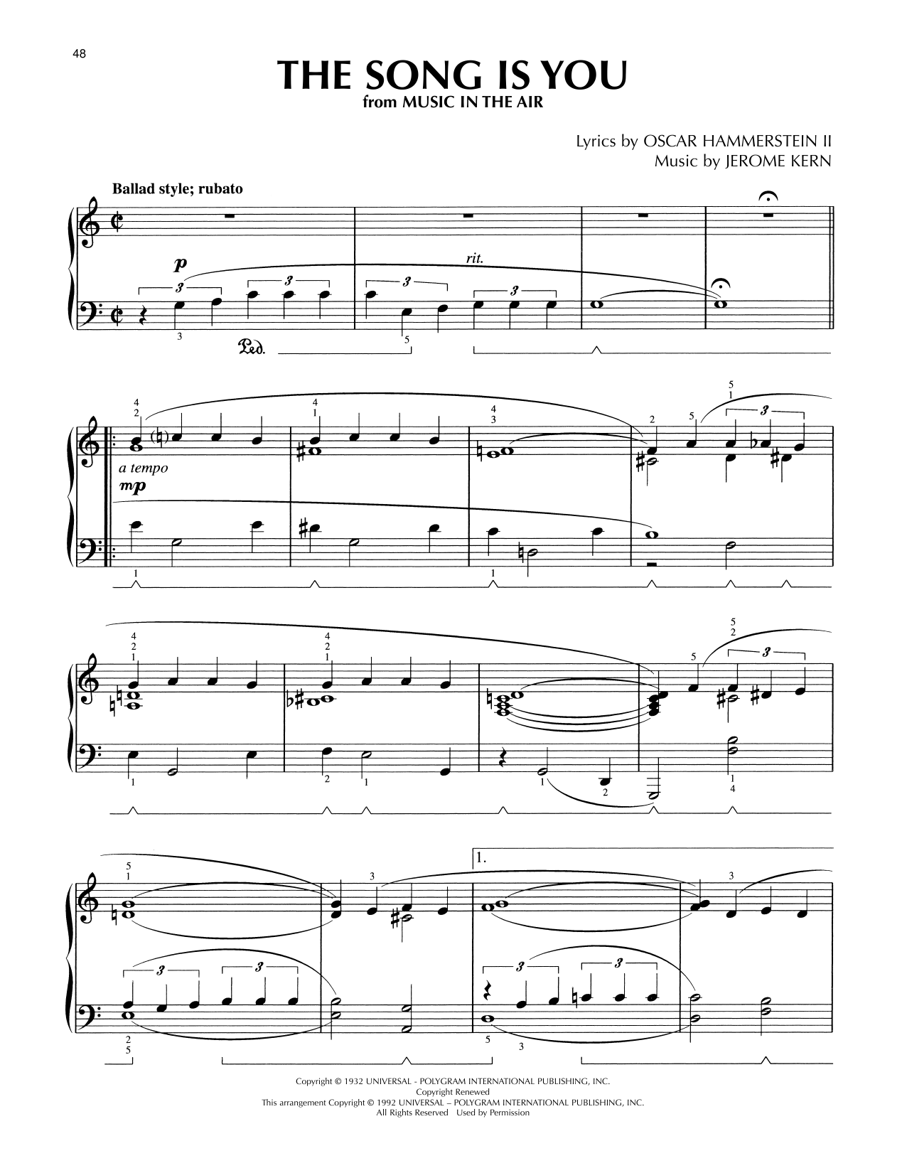 Download or print Jerome Kern The Song Is You (arr. Lee Evans) sheet music, chords and digital score arranged for Piano Solo. This Jazz score includes 4 page(s).