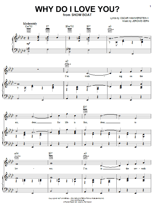 Download or print Jerome Kern Why Do I Love You? sheet music, chords and digital score arranged for Real Book – Melody & Chords – C Instruments. This Jazz score includes 1 page(s).