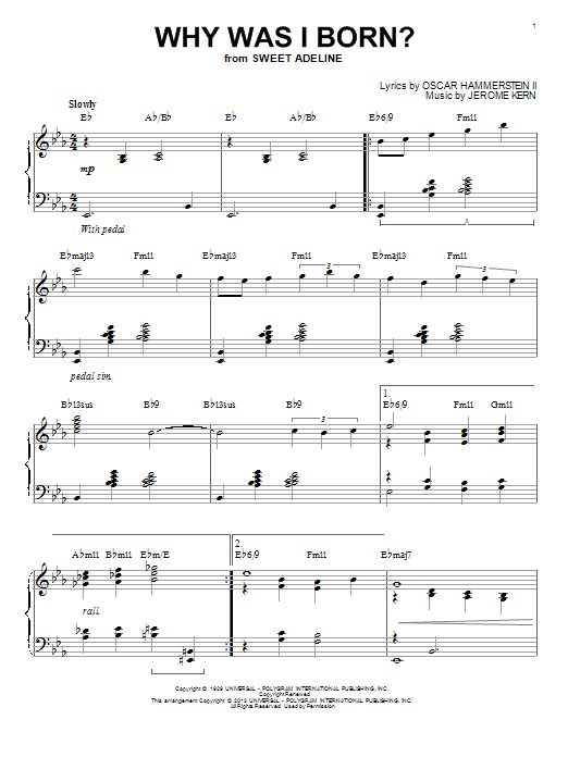 Download or print Jerome Kern Why Was I Born? [Jazz version] (arr. Brent Edstrom) sheet music, chords and digital score arranged for Piano Solo. This Jazz score includes 4 page(s).