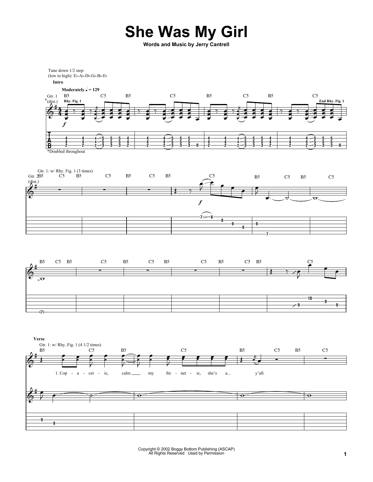 This composition is beautifuly arranged for Guitar Tab includes 10 page(s). It is performed by Jerry Cantrell. The style of the score is 'Rock'. Catalog SKU number of the notation is 1524162.