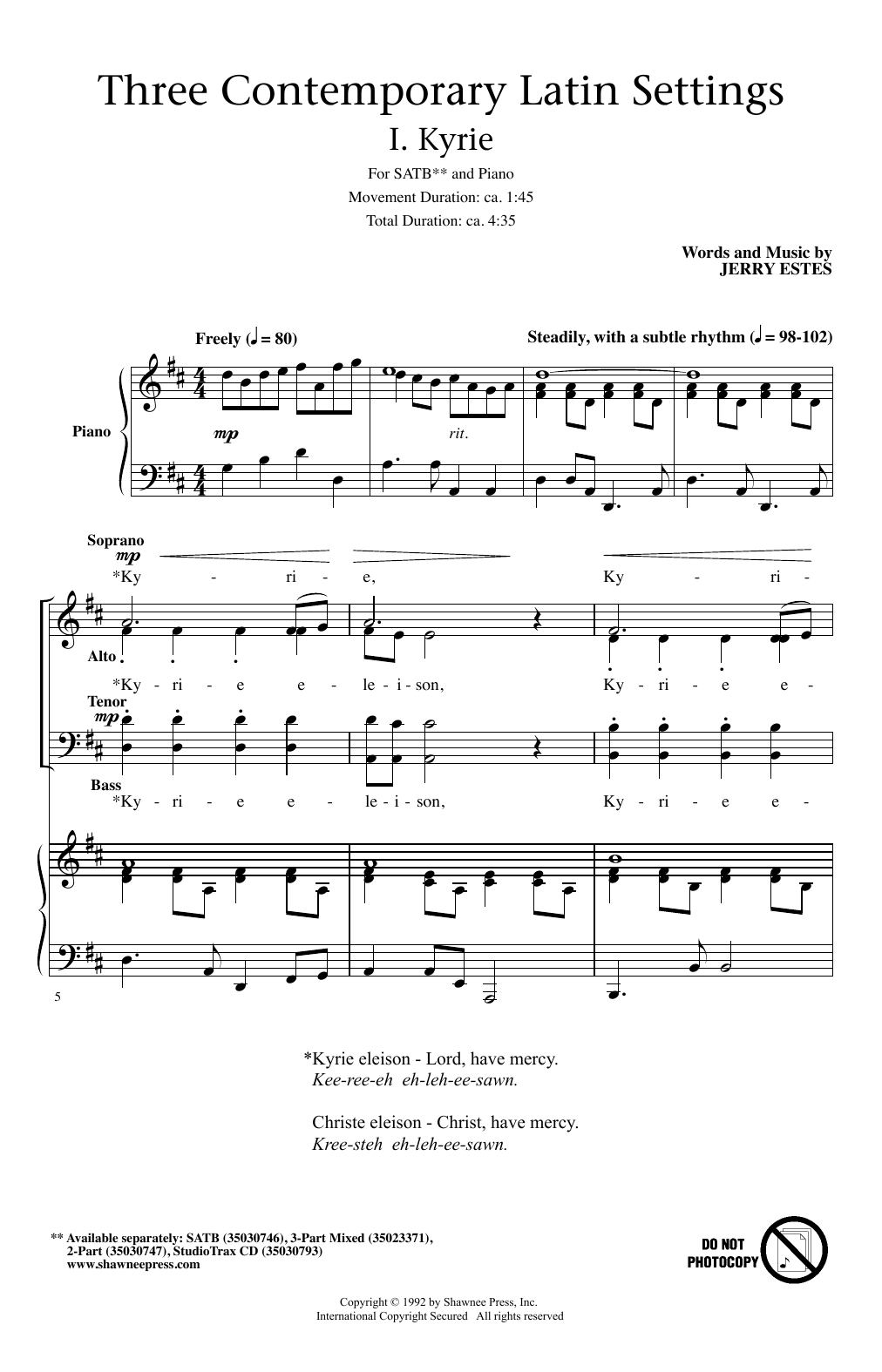 Download or print Jerry Estes Three Contemporary Latin Settings sheet music, chords and digital score arranged for 2-Part Choir. This Latin score includes 14 page(s).