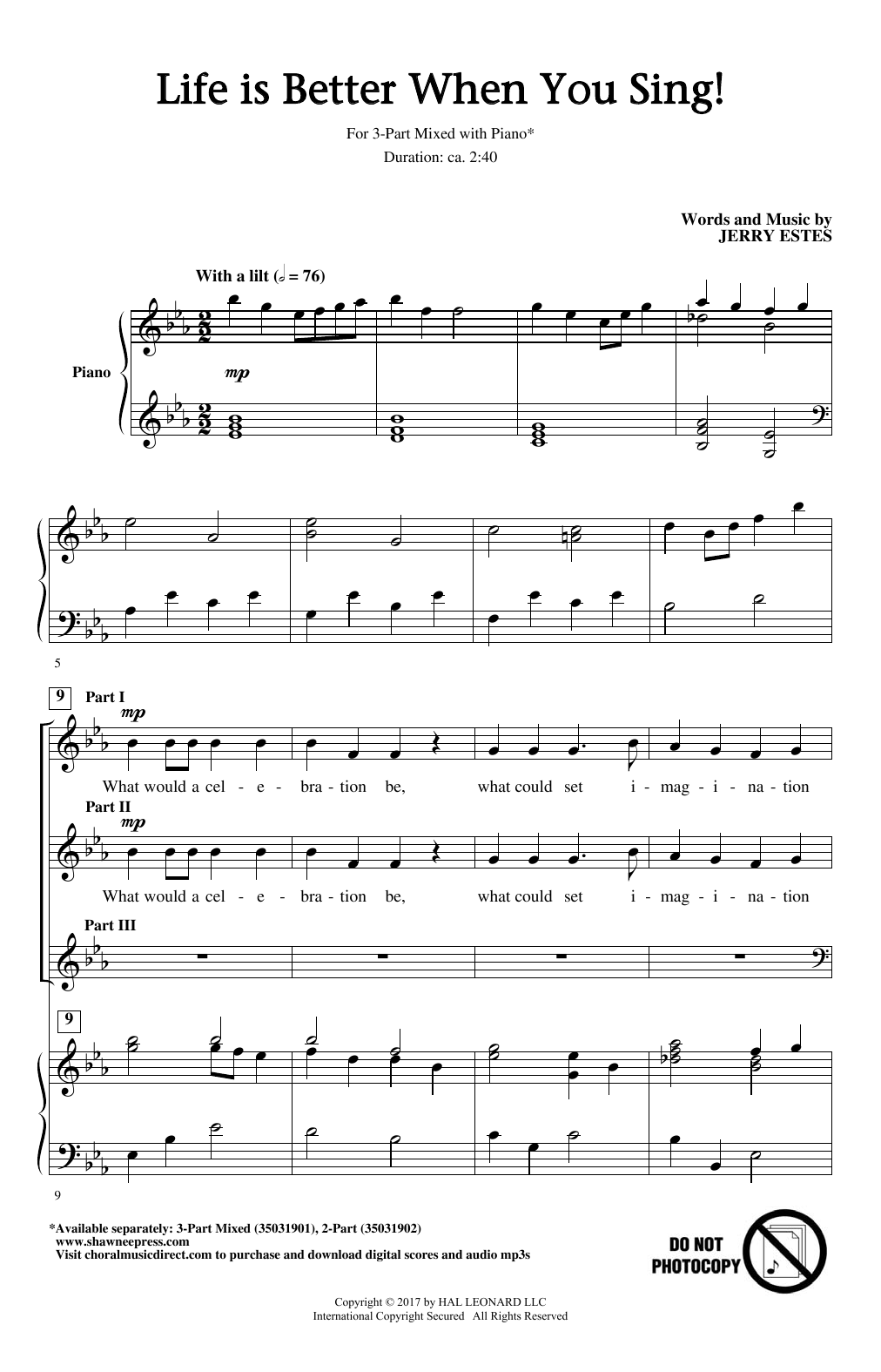 Download or print Jerry Estes Life Is Better When You Sing! sheet music, chords and digital score arranged for 2-Part Choir. This Concert score includes 10 page(s).