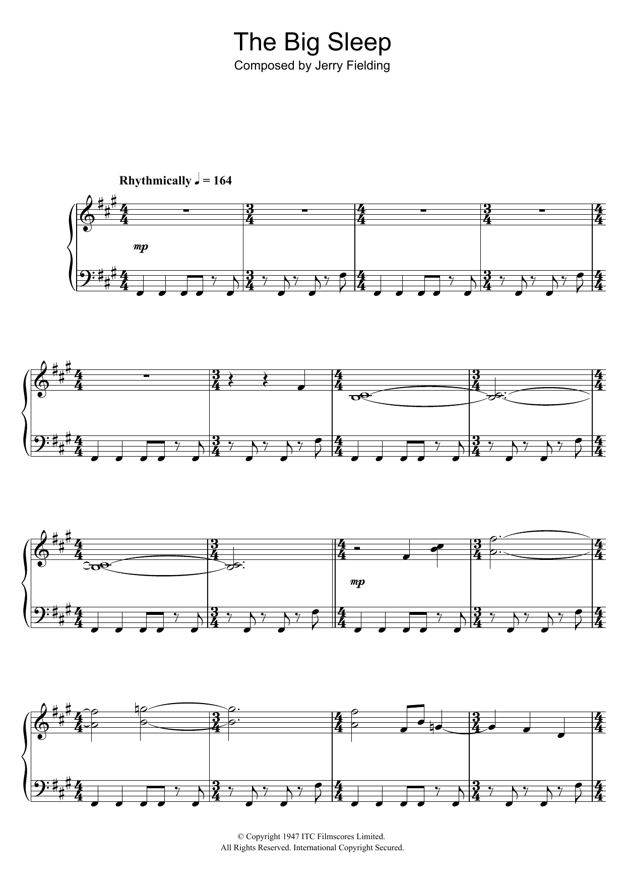 Download or print Jerry Fielding The Big Sleep (End Credits) sheet music, chords and digital score arranged for Piano Solo. This Film/TV score includes 5 page(s).