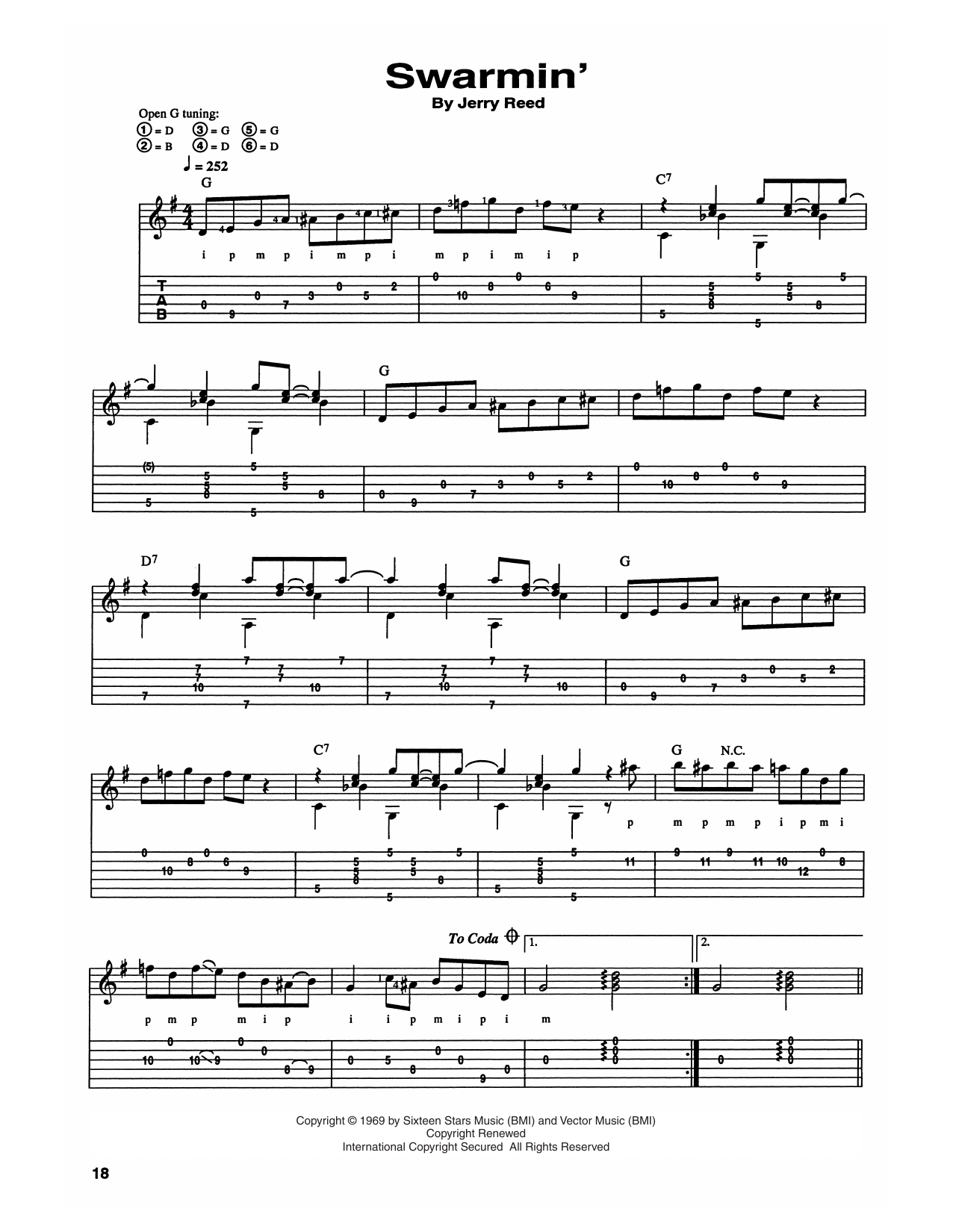Download or print Jerry Reed Swarmin' sheet music, chords and digital score arranged for Guitar Tab. This Country score includes 3 page(s).