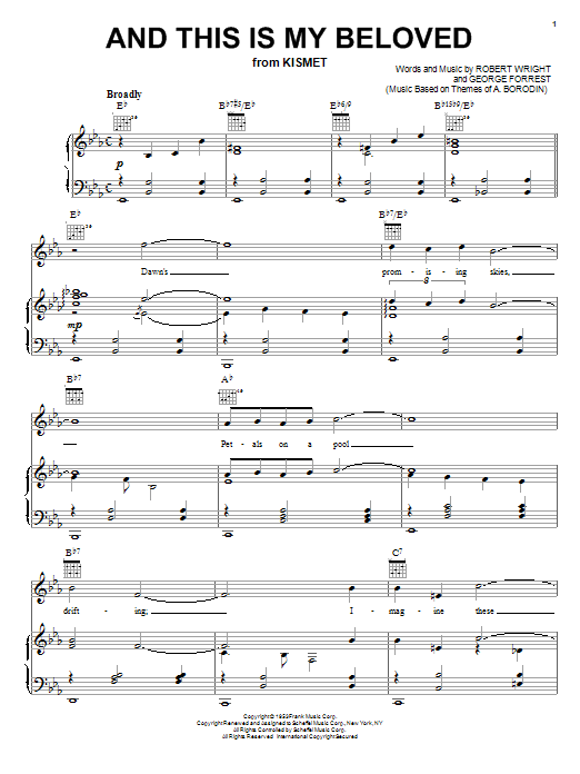 Download or print Jerry Vale And This Is My Beloved sheet music, chords and digital score arranged for Easy Piano. This Pop score includes 6 page(s).