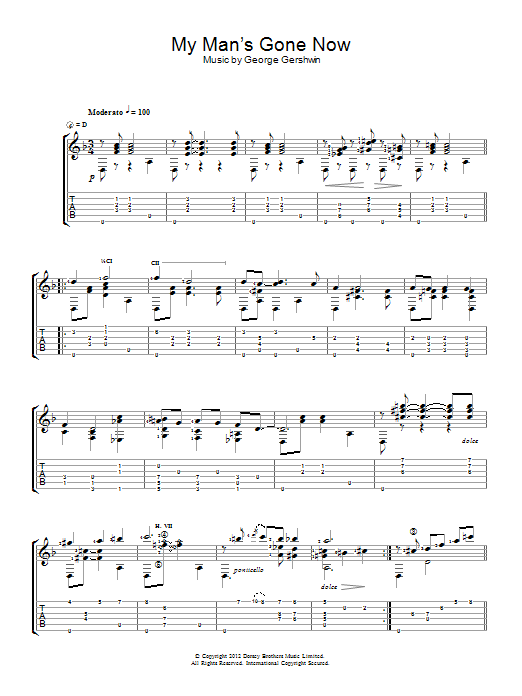 Download or print Jerry Willard My Man's Gone Now sheet music, chords and digital score arranged for Easy Guitar. This Jazz score includes 4 page(s).