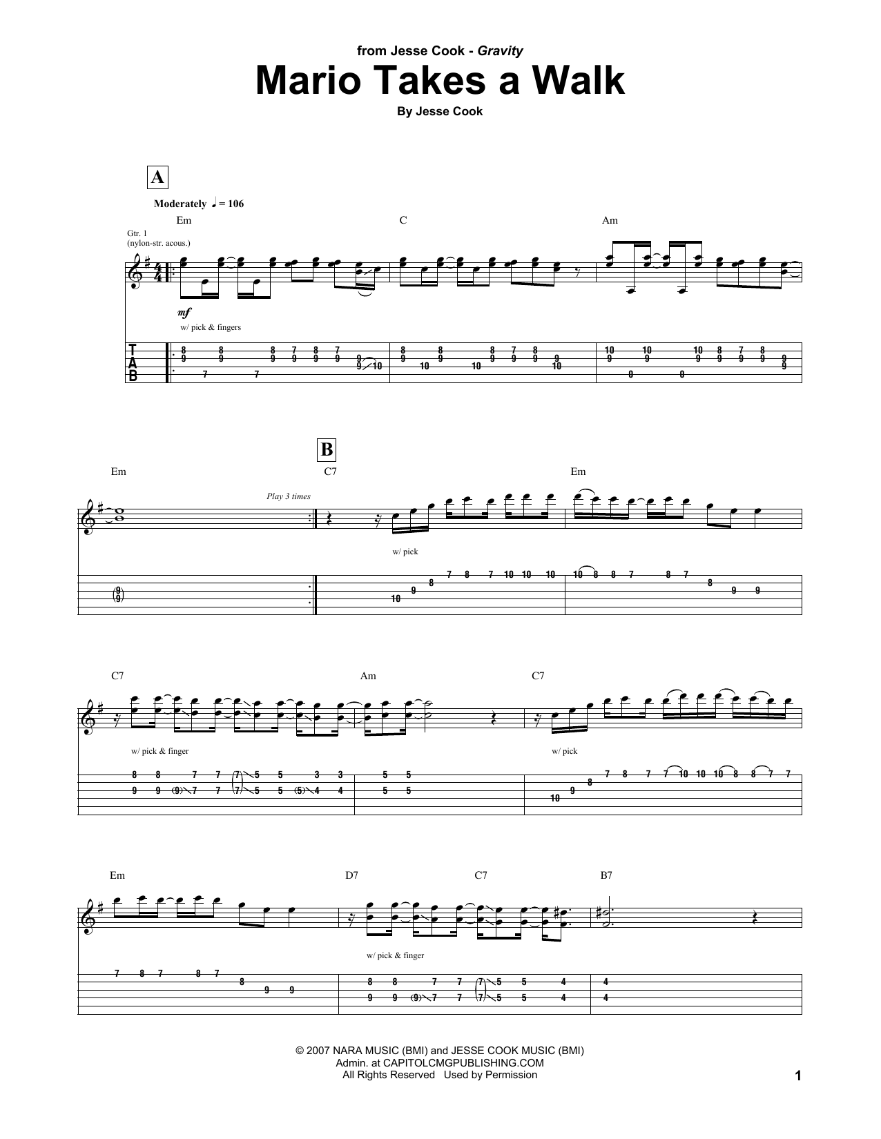 Download or print Jesse Cook Mario Takes A Walk sheet music, chords and digital score arranged for Guitar Tab. This Pop score includes 8 page(s).