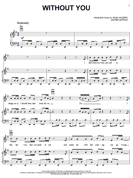 Download or print Jesse McCartney Without You sheet music, chords and digital score arranged for Piano, Vocal & Guitar Chords (Right-Hand Melody). This Pop score includes 7 page(s).