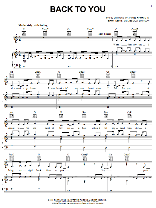 Download or print Jessica Simpson Back To You sheet music, chords and digital score arranged for Piano, Vocal & Guitar Chords (Right-Hand Melody). This Pop score includes 7 page(s).
