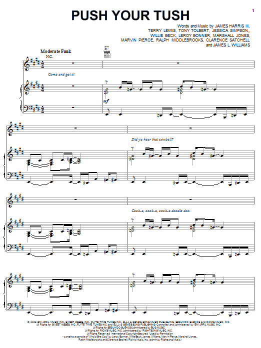 Download or print Jessica Simpson Push Your Tush sheet music, chords and digital score arranged for Piano, Vocal & Guitar Chords (Right-Hand Melody). This Pop score includes 11 page(s).
