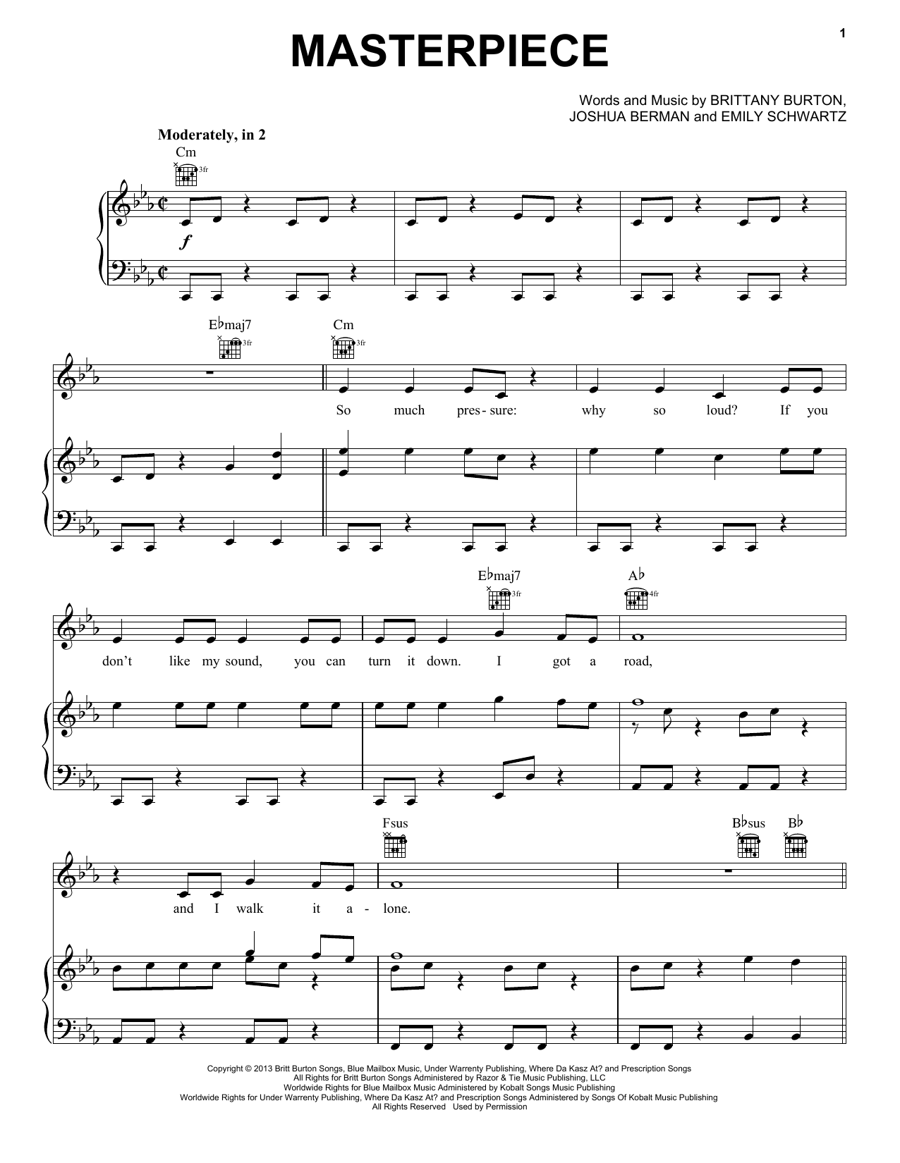 Download or print Jessie J Masterpiece sheet music, chords and digital score arranged for Piano, Vocal & Guitar Chords (Right-Hand Melody). This Pop score includes 6 page(s).