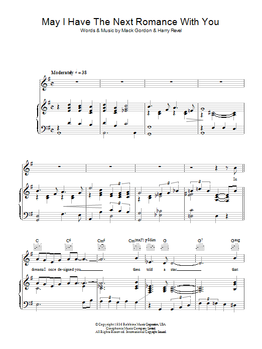 Download or print Jessie Matthews May I Have The Next Romance With You? sheet music, chords and digital score arranged for Piano, Vocal & Guitar Chords. This Standards score includes 4 page(s).