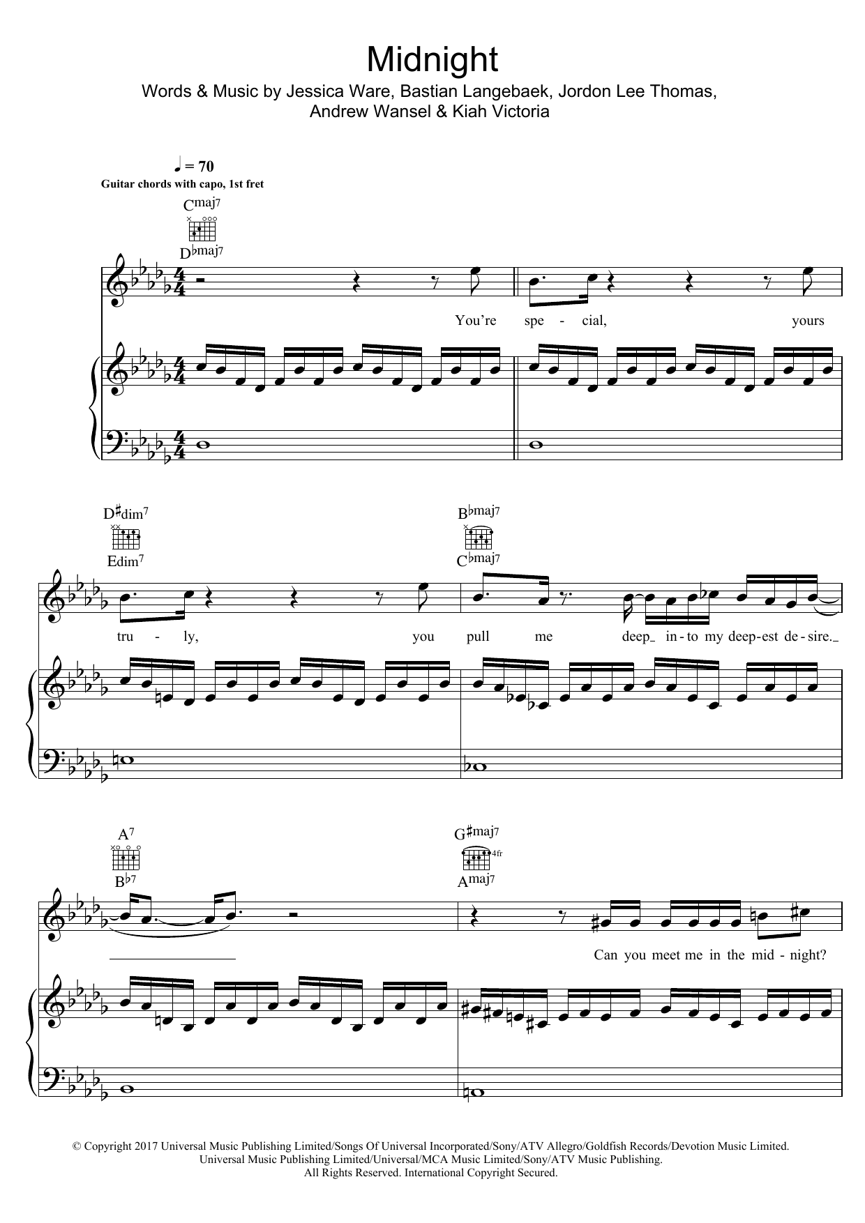 Download or print Jessie Ware Midnight sheet music, chords and digital score arranged for Piano, Vocal & Guitar Chords. This Pop score includes 6 page(s).