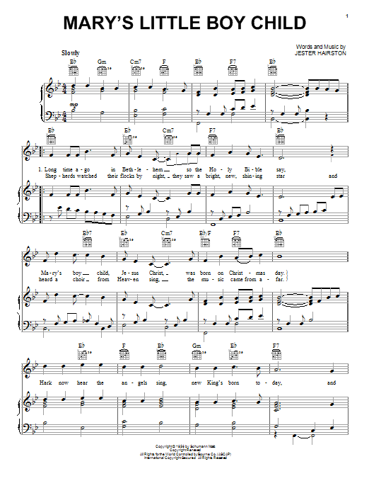 Download or print Jester Hairston Mary's Little Boy Child sheet music, chords and digital score arranged for Educational Piano. This Christmas score includes 2 page(s).
