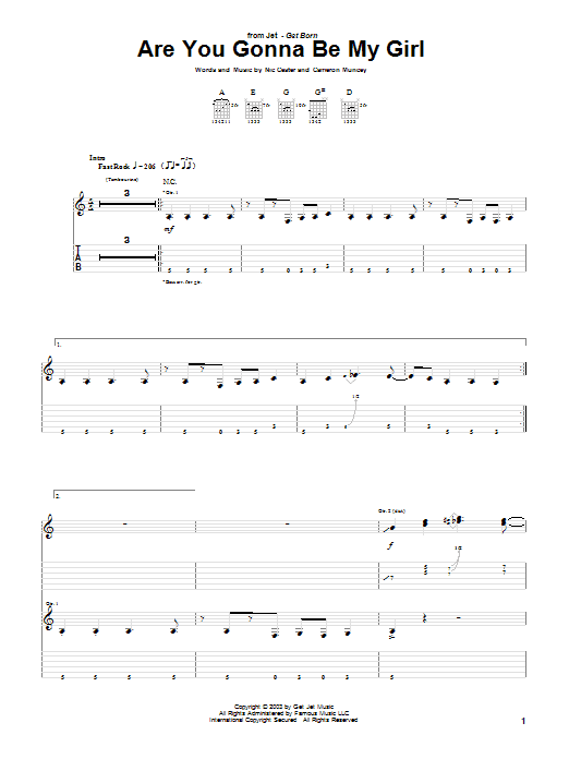 Download or print Jet Are You Gonna Be My Girl sheet music, chords and digital score arranged for Guitar Chords/Lyrics. This Rock score includes 3 page(s).