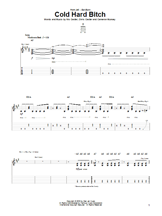 Download or print Jet Cold Hard Bitch sheet music, chords and digital score arranged for Easy Guitar Tab. This Pop score includes 5 page(s).