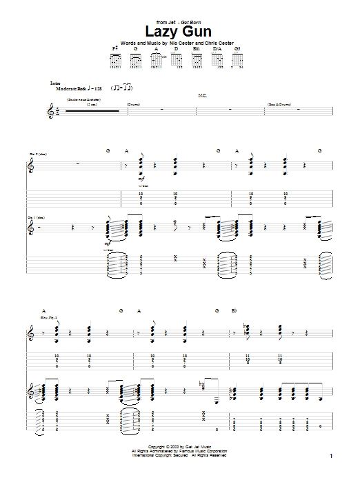 Download or print Jet Lazy Gun sheet music, chords and digital score arranged for Guitar Tab. This Rock score includes 8 page(s).