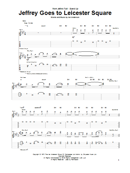 Download or print Jethro Tull Jeffrey Goes To Leicester Square sheet music, chords and digital score arranged for Guitar Tab. This Pop score includes 6 page(s).