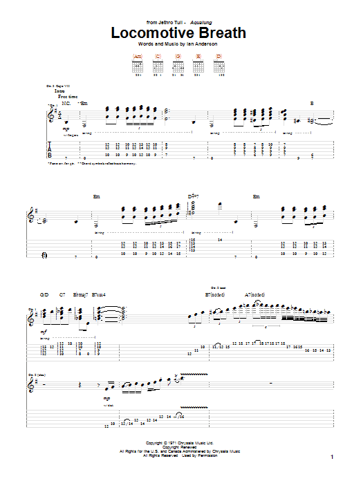Download or print Jethro Tull Locomotive Breath sheet music, chords and digital score arranged for Guitar Tab. This Metal score includes 13 page(s).