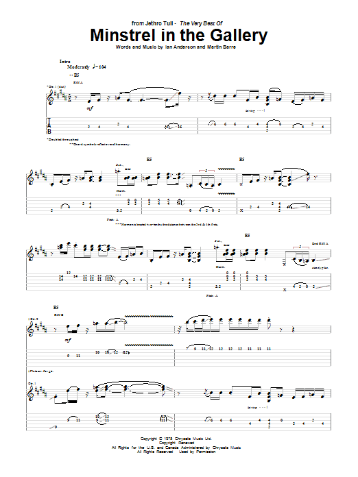 Download or print Jethro Tull Minstrel In The Gallery sheet music, chords and digital score arranged for Guitar Tab. This Metal score includes 9 page(s).