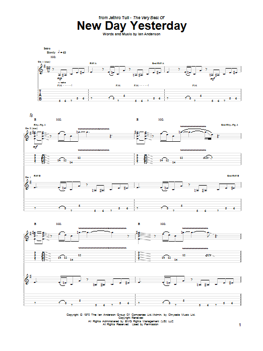 Download or print Jethro Tull New Day Yesterday sheet music, chords and digital score arranged for Guitar Tab. This Metal score includes 6 page(s).