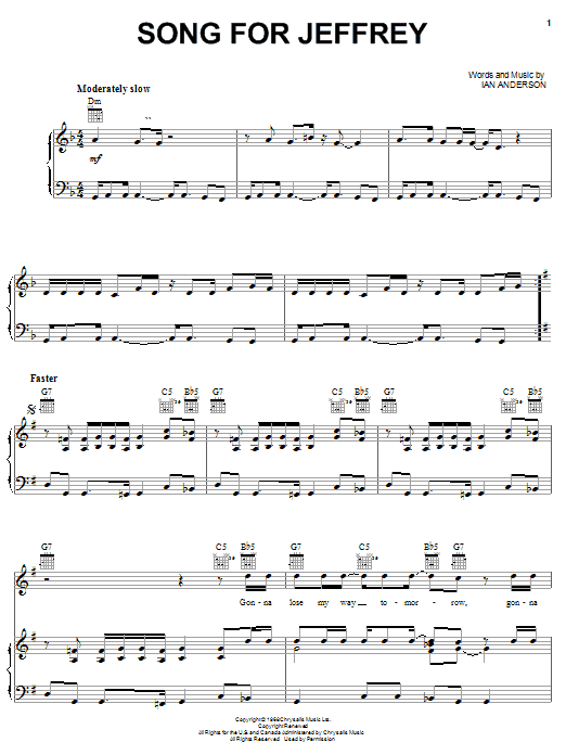 Download or print Jethro Tull Song For Jeffrey sheet music, chords and digital score arranged for Guitar Tab. This Metal score includes 6 page(s).