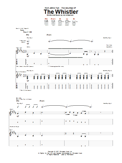 Download or print Jethro Tull The Whistler sheet music, chords and digital score arranged for Guitar Tab. This Metal score includes 9 page(s).