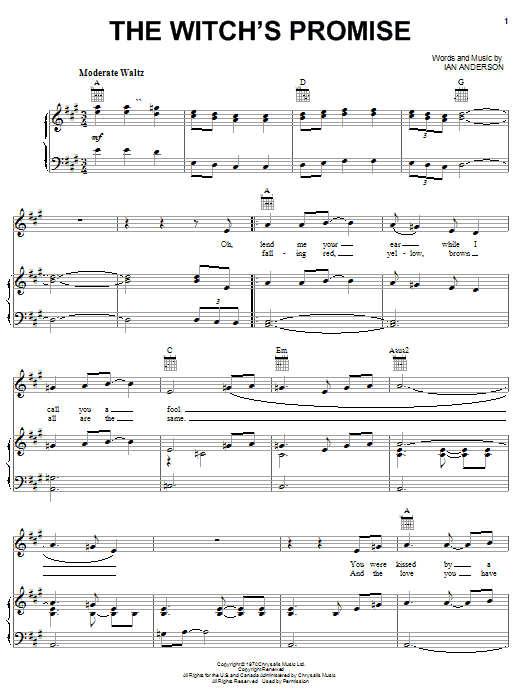 Download or print Jethro Tull The Witch's Promise sheet music, chords and digital score arranged for Guitar Tab. This Metal score includes 5 page(s).