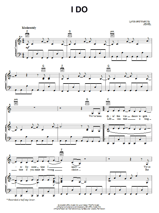Download or print Jewel I Do sheet music, chords and digital score arranged for Piano, Vocal & Guitar Chords (Right-Hand Melody). This Country score includes 6 page(s).