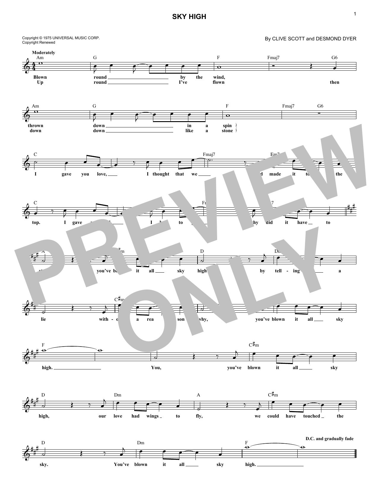 Download or print Jigsaw Sky High sheet music, chords and digital score arranged for Lead Sheet / Fake Book. This Pop score includes 1 page(s).
