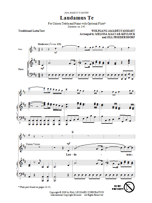 Download or print Jill Friedersdorf and Melissa Malvar-Keylock Laudamus Te sheet music, chords and digital score arranged for Unison Choir. This Classical score includes 11 page(s).