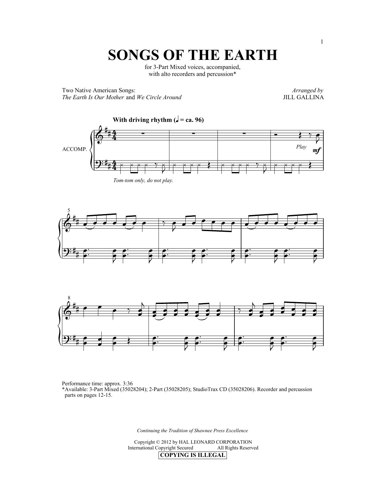 Download or print Jill Gallina The Earth Is Our Mother sheet music, chords and digital score arranged for 3-Part Mixed Choir. This Concert score includes 13 page(s).