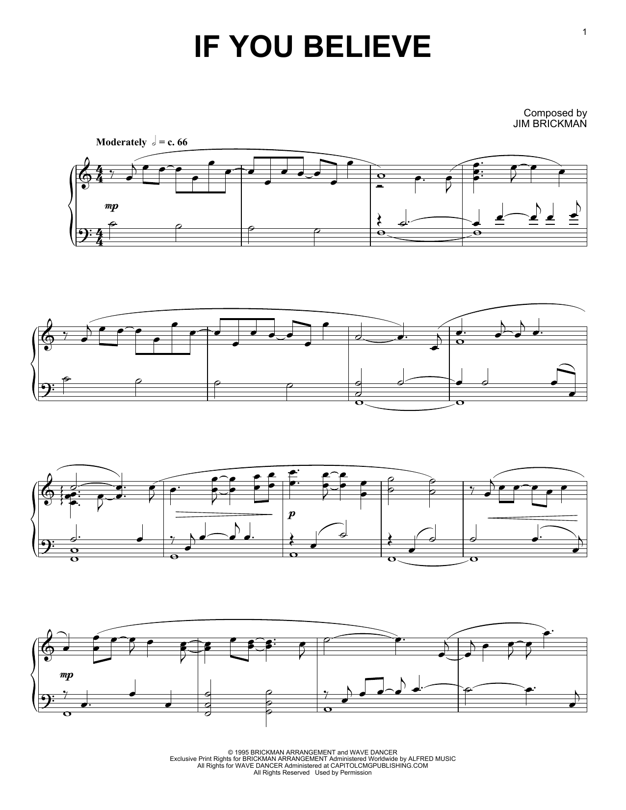 Download or print Jim Brickman If You Believe sheet music, chords and digital score arranged for Piano Solo. This Christmas score includes 4 page(s).