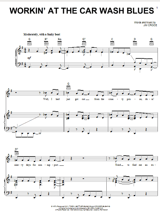 Download or print Jim Croce Workin' At The Car Wash Blues sheet music, chords and digital score arranged for Guitar Tab. This Folk score includes 11 page(s).