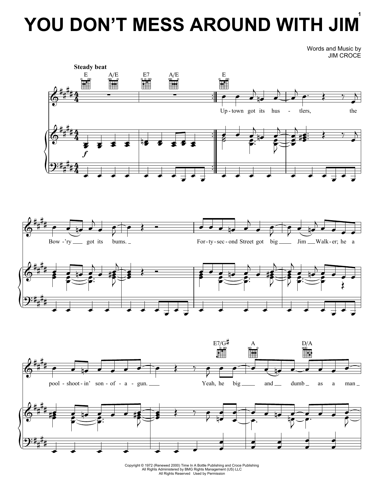 Download or print Jim Croce You Don't Mess Around With Jim sheet music, chords and digital score arranged for Guitar Tab (Single Guitar). This Country score includes 7 page(s).