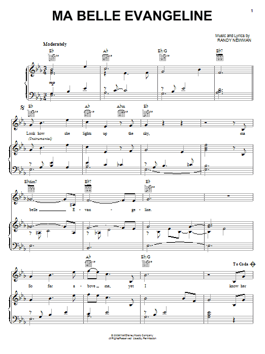 Download or print Jim Cummings Ma Belle Evangeline sheet music, chords and digital score arranged for Easy Piano. This Disney score includes 5 page(s).