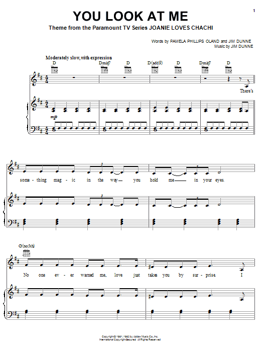Download or print Jim Dunne You Look At Me sheet music, chords and digital score arranged for Piano, Vocal & Guitar Chords (Right-Hand Melody). This Film/TV score includes 5 page(s).