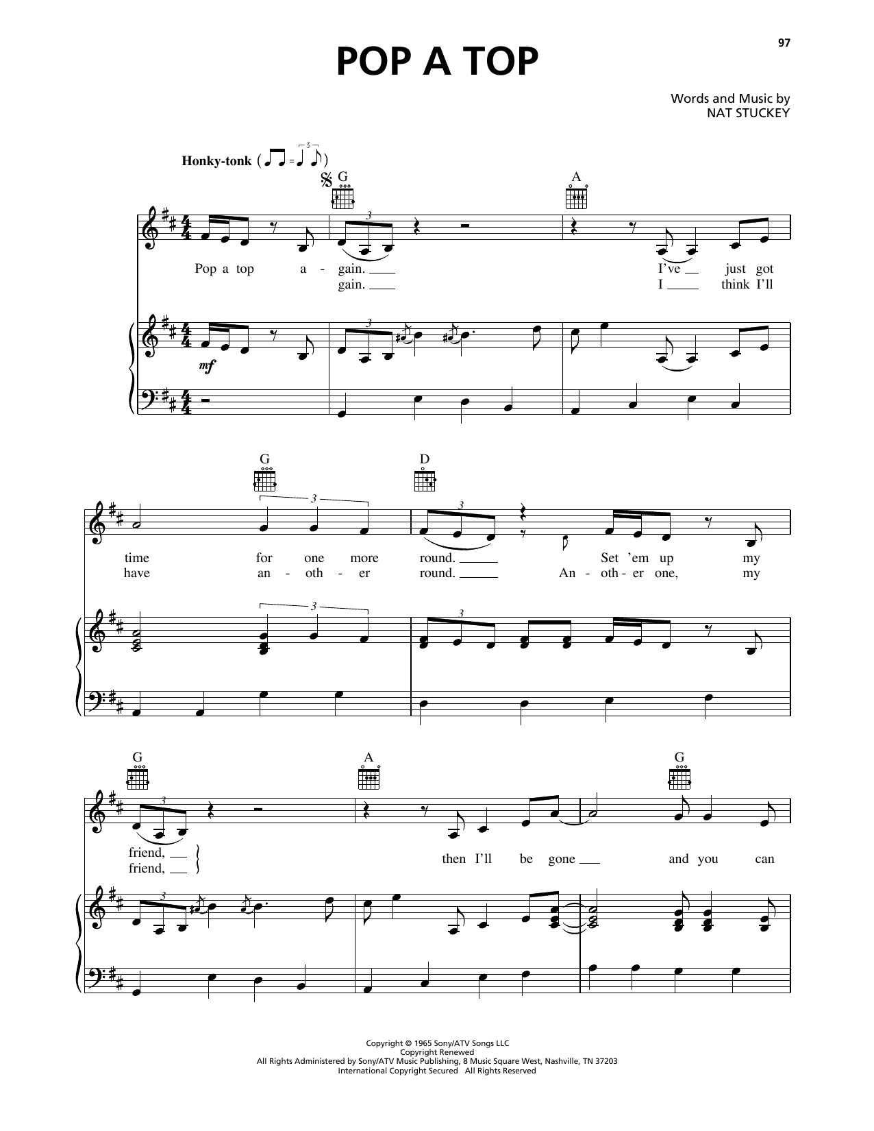 Download or print Jim Ed Brown Pop A Top sheet music, chords and digital score arranged for Piano, Vocal & Guitar Chords (Right-Hand Melody). This Country score includes 5 page(s).