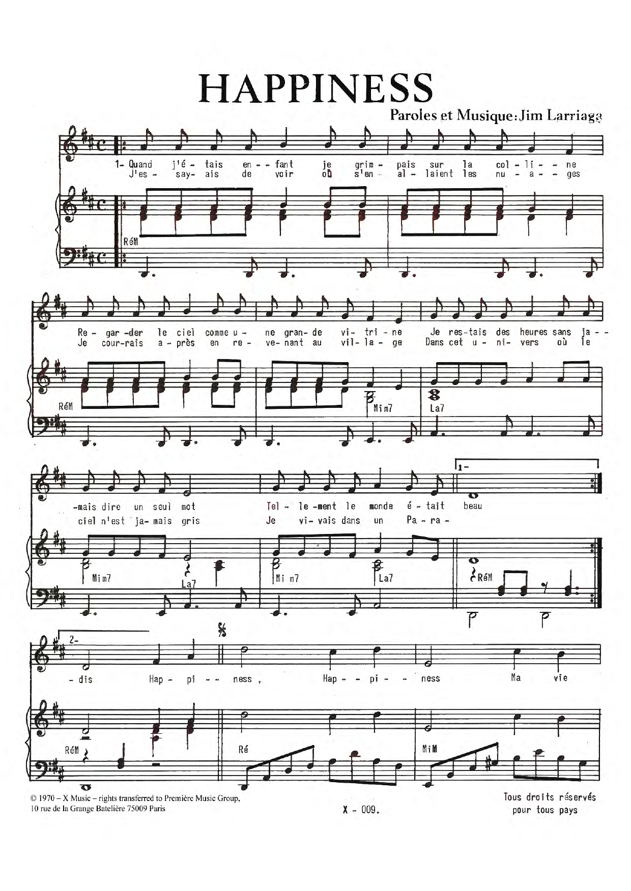 Download or print Jim Larriaga Happiness sheet music, chords and digital score arranged for Piano & Vocal. This Pop score includes 3 page(s).