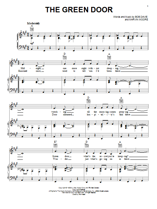 Download or print Jim Lowe The Green Door sheet music, chords and digital score arranged for Lead Sheet / Fake Book. This Standards score includes 1 page(s).