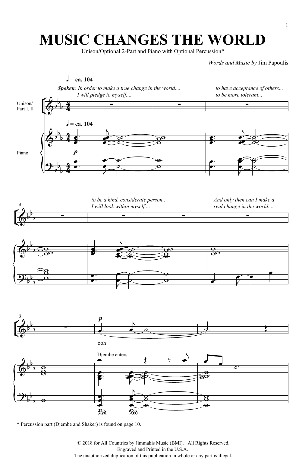 Download or print Jim Papoulis Music Changes The World sheet music, chords and digital score arranged for SSA Choir. This Inspirational score includes 13 page(s).