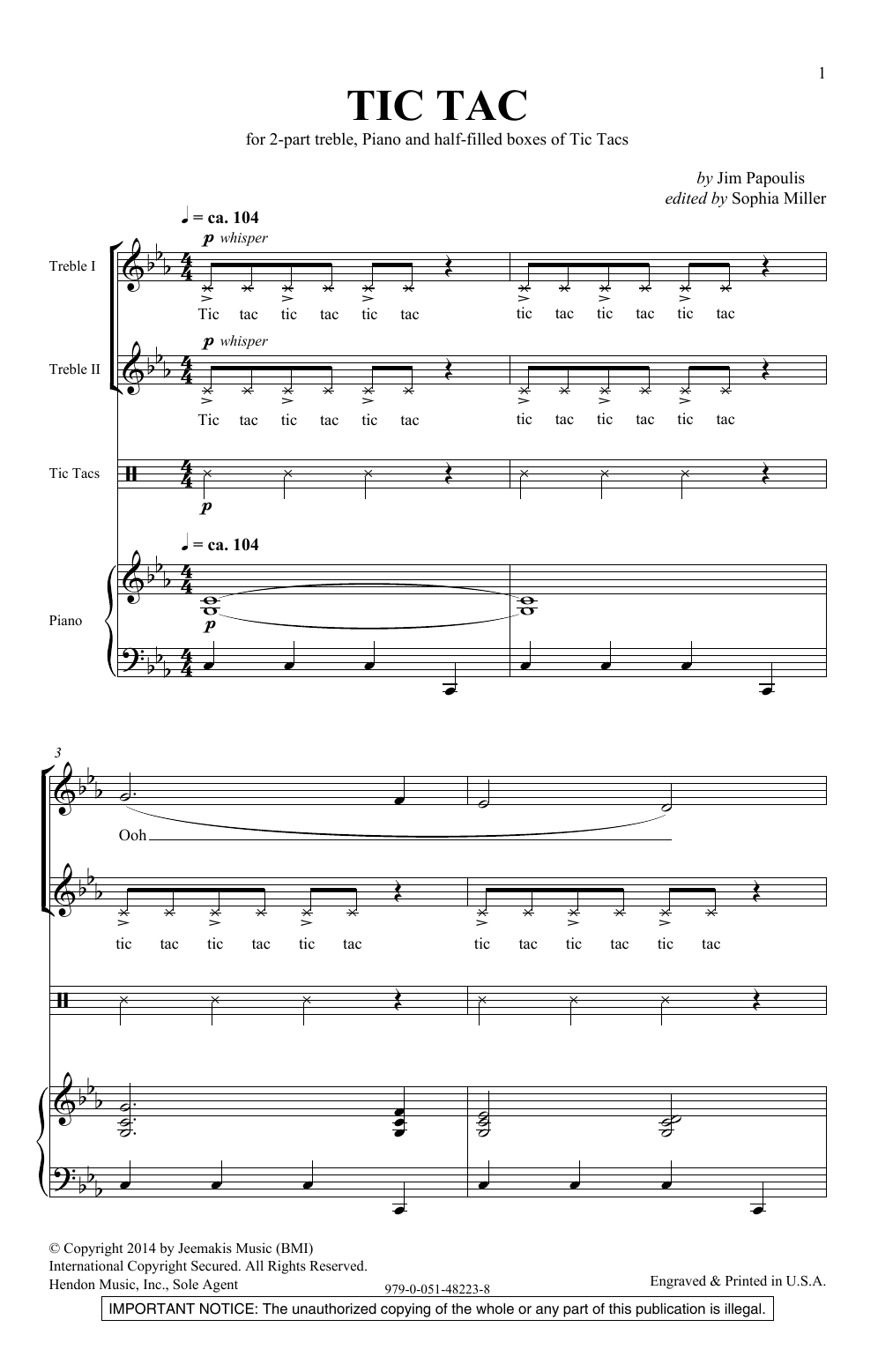Download or print Jim Papoulis Tic Tac sheet music, chords and digital score arranged for Unison Choir. This Concert score includes 13 page(s).