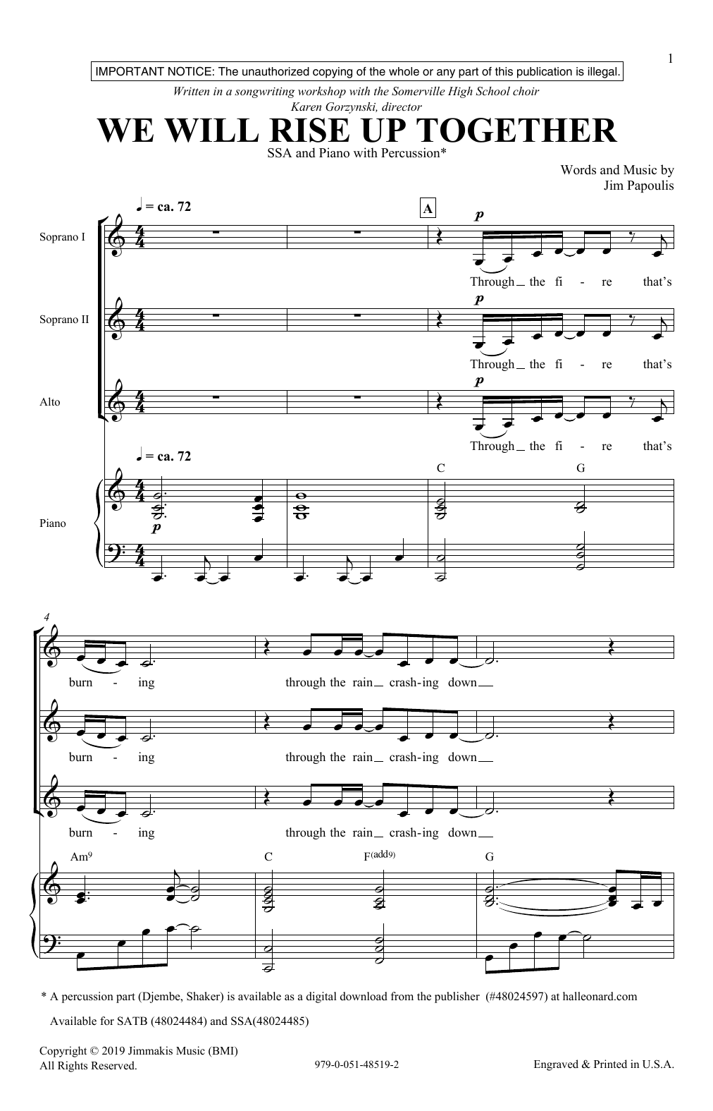 Download or print Jim Papoulis We Will Rise Up Together sheet music, chords and digital score arranged for SSA Choir. This Inspirational score includes 10 page(s).