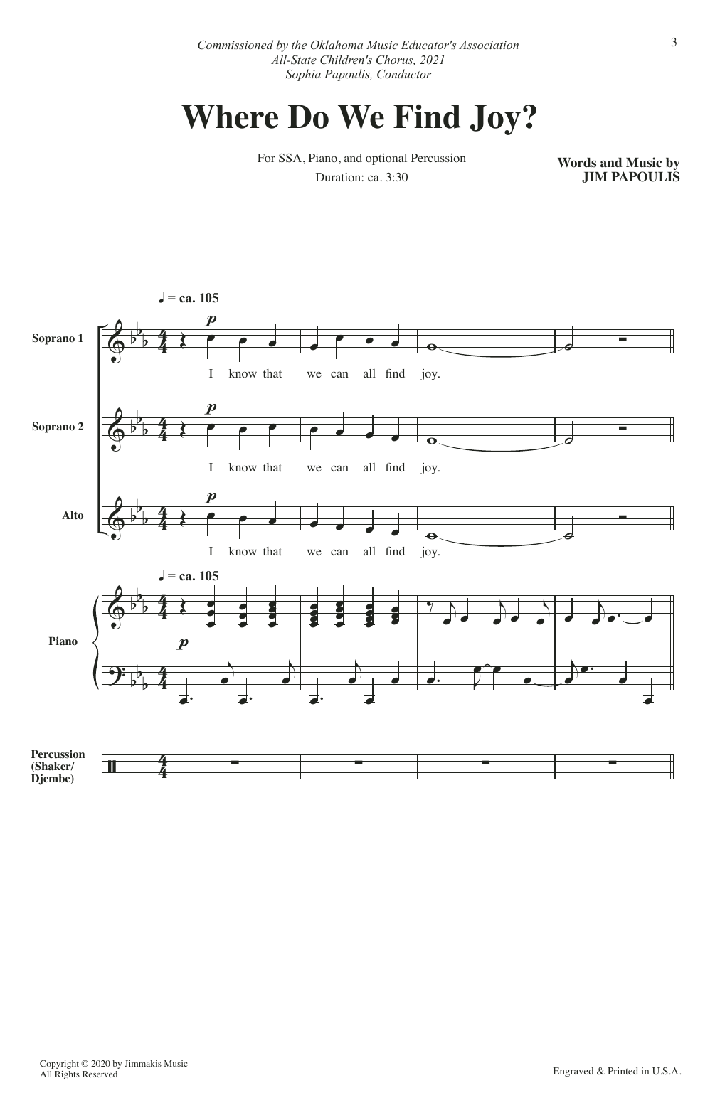 Download or print Jim Papoulis Where Do We Find Joy? sheet music, chords and digital score arranged for SSA Choir. This Concert score includes 19 page(s).