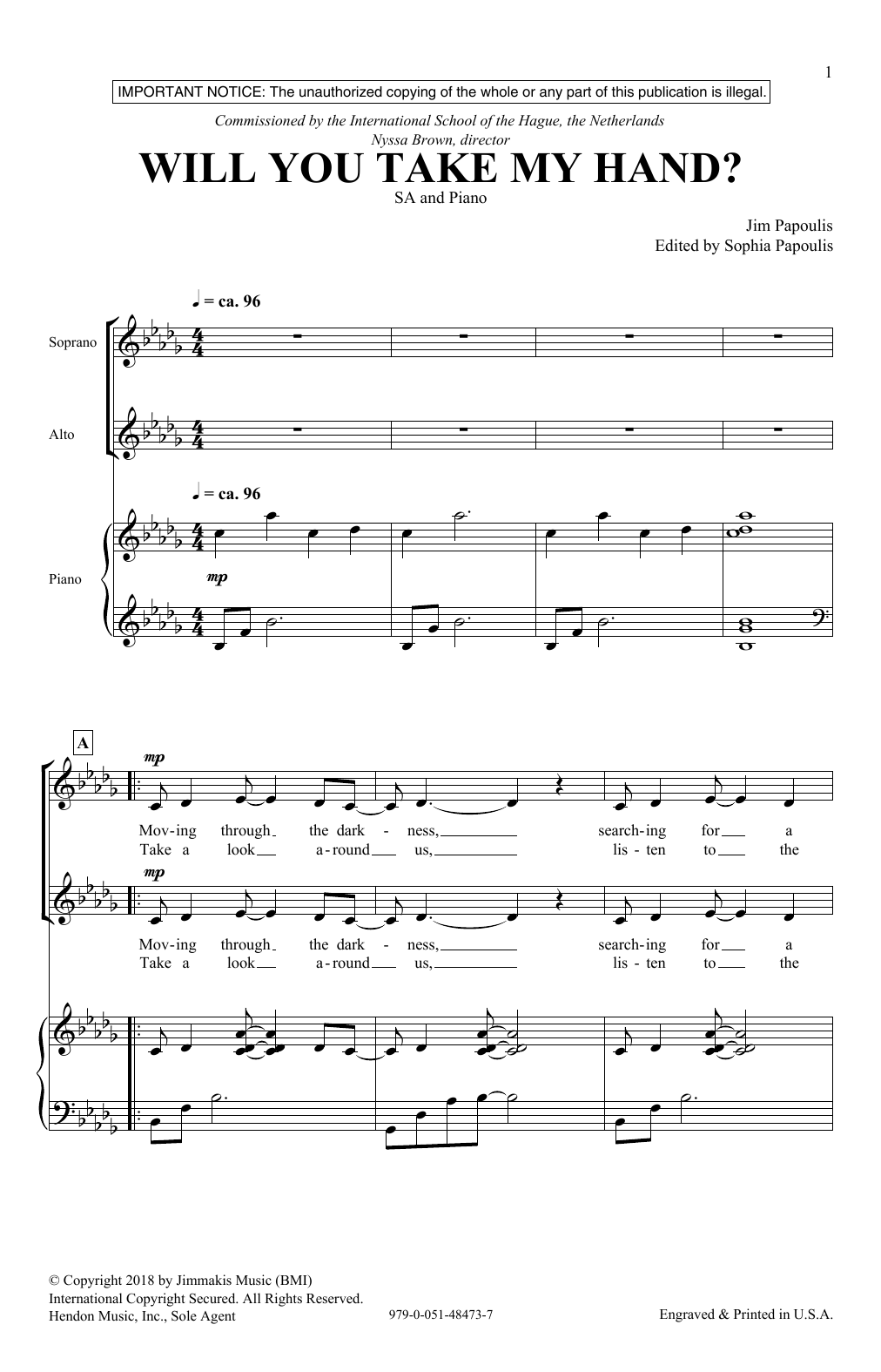 Download or print Jim Papoulis Will You Take My Hand sheet music, chords and digital score arranged for 2-Part Choir. This Inspirational score includes 6 page(s).